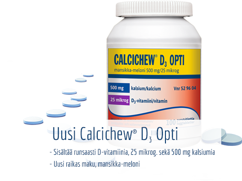 Calcichew® on helppo tapa varmistaa kalsiumin ja D-vitamiinin riittävä saanti. Joka päivä. Tutustu Calcichew®-tuoteperheeseen jatkamalla eteenpäin tai kysy lisää apteekista.